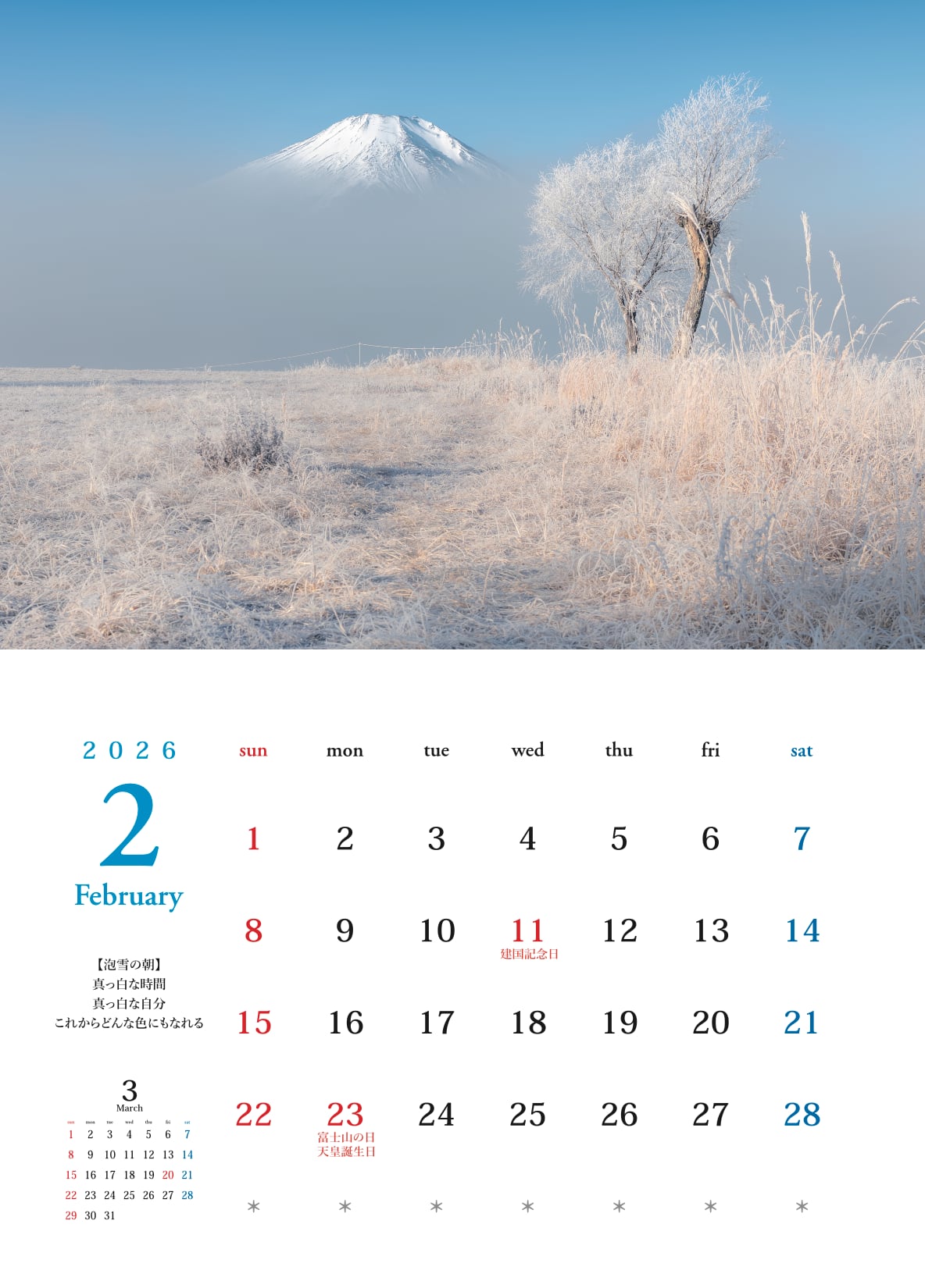 季節ごとの富士山はもちろん、写真に添えた言葉もお楽しみください